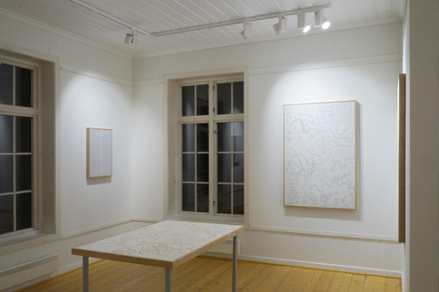 In September I did an exhibition at Modum Kunstforening with the Res Ipsa concept. I did both SIT DOWN For Equality and TABLES. There was a small but enthusiastic crowd. This time I managed to do decent documentation. The Turned Table painting turned out very good. The room was beautiful on the second floor of an old villa. There was a lot of windows, and the lightning was also excellent. There was a lot of space, and I could fit almost the whole project. I got excellent documentation of the entire show. Modum Kunstforening bought one of the paintings in the PLEDGES series, which I really appreciated. It was the first work in the series to be sold. The gallery was in Vikersund, about an hours drive from Oslo. On my way back after picking up the works when the exhibition was over, I visited the Kistefos museum. That was also great.