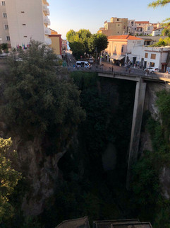 The villa was balancing on the edge of a deep ravine with the ruin of an old mill at the bottom. The city's landscape was dominated by high cliffs that reached over the sea, here and there interrupted by deep gorges. I utilised that in one of the works I produced during my stay. Here are some more pictures of the house and the breathtaking ravine.